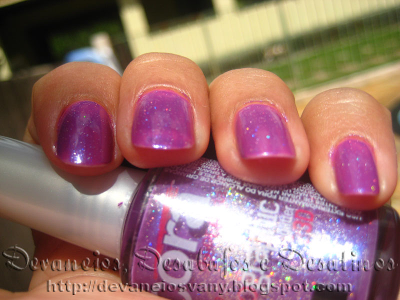 Aqui estou com 4 camadas de Madagascar e 1 de Halley. Ele tem uma cor bem fofa, o glitter é 3D mas é bem discreto. Seca bem rápido.